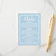 Eleva cada detalle de tu boda con nuestras naipes nasales nítidas y onduladas tarjetas verticales de recinto. Diseñadas para complementar nuestra encantadora colección, estas encantadoras adiciones le dan un toque de personalidad y calidez a su suite de papelería. Con la misma tipografía de acuarela blanca ilustrada a mano y con un fondo azul, nuestras tarjetas de alojamiento aúnan perfectamente el tema boda, creando una experiencia cohesiva y cautivadora para sus huéspedes. Elija otro diseño de fondo con marcos diferentes de la misma colección para añadir aún más juego. Ya sea que usted esté brindando información adicional sobre alojamiento, direcciones o simplemente compartiendo un mensaje sincero, nuestras nuevas tarjetas de presentación blancas azules aseguran que cada aspecto de su celebración esté infundido con el mismo espíritu caprichoso que hace única su historia de amor. Únete a nosotros para dar vida a tu visión boda, un detalle delicioso a la vez. Dejemos que nuestras tarjetas sean el toque final que deja una impresión duradera a sus huéspedes, lo que provoca emoción y anticipación para el mágico día por delante.