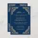 Tarjeta De Recepción Marco floral Mehndi islámico azul y dorado
