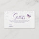 Con un diseño floral de moda y delicados productos botánicos acuáticos, nuestra mariposa de flores silvestres adivina cuántas tarjetas de gabinete son la adición perfecta a cualquier ducha de bebé chica. Las elegantes flores de boho y los detalles de la mariposa púrpura hacen de esta tarjeta de bebé un lugar imprescindible para una pequeña celebración con temática de flor silvestre.