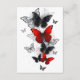 Tarjeta De Recepción Mariposas Morpho voladoras negras y rojas