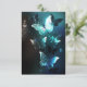 Mariposas brillantes nocturnas de menta sobre fondo abstracto negro.