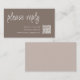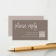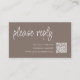 Haga que el proceso RSVP de su boda sea fluido, con nuestra tarjeta de código QR RSVP. Esta tarjeta de personalizable incluye letras blancas modernas con un fondo marrón natural. El diseño incluye un área de texto de personalizable y un espacio para generar un código QR único para que los huéspedes puedan responder fácilmente a RSVP a través de sus smartphones. Vaya a la opción "personalizar", agregue la dirección URL de su sitio web boda al área proporcionada, y se generará un código QR en el diseño sólo para usted. Haga que su día especial sea aún más memorable con esta tarjeta de gabinete boda funcional y de moda.