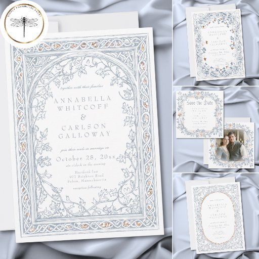Medieval Fantasy Frame Blue Gold Etching WeddingDiseñado por Kathe Santillo