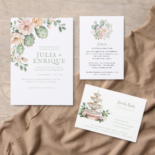 Tarjeta De Recepción Mexico Destination | Blooming Cactus | Details