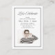 Black and white simple mini size graduation announcement and Invite features elegant graceful serif font and script with photos in black and white, simple and sophisticated, Custom it with your own photo and grad party information in the back.
