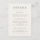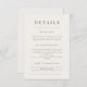 A beautifully simple wedding details card designed with a subtle watercolour effect botanical line drawing behind clean modern typography and soft neutral tones. This minimalist information card provides guests with everything they need to know, including your wedding website, accommodation, travel details, schedule, or any important notes.