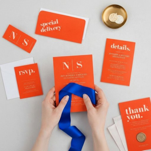 Tarjeta De Recepción Minimalist Thank You left Orange Pink