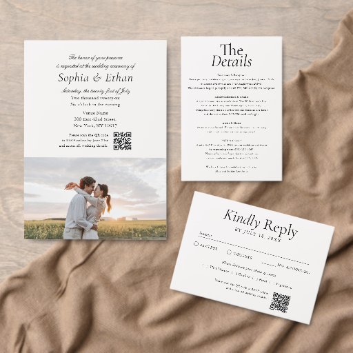 Tarjeta De Recepción Minimalist Wedding Details Photo White