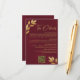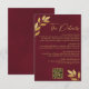 Tarjeta De Recepción Mod Leaves Burgundy Gold Wedding Details QR Code