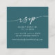 Esta tarjeta de gabinete rsvp de boda azul verde azulado código QR de moda boho es perfecta para un boda minimalista. El audaz tono de joyería turquesa oscuro presenta un diseño bohemio moderno con una caligrafía rústica sencilla con un estilo único y clásico. Introduzca su dirección web en la sección de código QR de la plantilla y el código QR se actualizará automáticamente y se vinculará a su sitio.