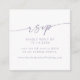 Esta tarjeta de gabinete rsvp de boda púrpura de moda boho, código QR, es perfecta para un boda minimalista. El diseño bohemio moderno y liviano de lavanda presenta una caligrafía rústica sencilla con un estilo único y clásico. Introduzca su dirección web en la sección de código QR de la plantilla y el código QR se actualizará automáticamente y se vinculará a su sitio.