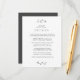 Una bonita y elegante tarjeta minimalista de boda botánico con detalles de su boda con letras clásicas unidas y escritura moderna con acento manuscrito es perfecta para una elegante ceremonia de boda en el campo. Personalizado con los detalles de su boda y enmarcado desde arriba y abajo por una sola rama botánica. El color de ceniza gris de la escritura y el fondo inverso hace una declaración clásica, aunque puede cambiarse si lo desea. Para crear su propia tarjeta de gabinete de boda minimalista elegante de moda, haga clic en el botón "Personalizar" y cambie el texto y la foto a la suya. Para personalizar de la paleta de colores, haga clic en "Editar más adelante".