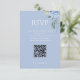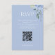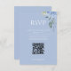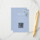 Moda y elegante tarjeta de gabinete de hidrangea azul RSVP, con un hermoso diseño floral junto con sus nombres, la fecha del evento, su código QR del sitio web y un mensaje para responder en línea. Esta tarjeta, con un fondo azul polvoriento, es elegante y elegante con tonos juveniles. ¡Personalízala para adecuarla a tu gusto.