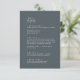 Esta moderna tarjeta de gabinete de detalles boda azul marino de moda oscura es perfecta para un simple boda. El diseño de boho neutro presenta una tipografía bohemia rústica única y elegante de color azul oscuro y blanco minimalista.