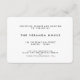 Una moderna carta de inserción de la recepción de bodas, elegante y de diseño, en su sencillez. Blanco y negro con tipografía elegante y contemporánea, cada línea es fácilmente personalizada para los detalles adicionales que le gustaría incluir con sus invitaciones de boda.