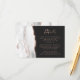 El borde izquierdo de esta elegante y moderna tarjeta de gabinete de detalles bodas cuenta con un borde de agate color agua blanco y gris recortado con falso purpurina oro rosa. El título está escrito a mano, con el texto del personalizable debajo en el tipo de letra de copperplate color rosa rosa sobre un fondo negro de pizarra oscura. El reverso presenta un diseño de agate que coincide.