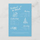 Modern Blue Script Lake Bachelorette Weekend Details Enclosure Card. An elegant and modern, blue and beige lake bachelorette weekend details card, designed with script lettering, and trendy doodles. Personalize with your bachelorette weekend itinerary, and further details below.