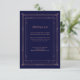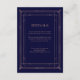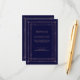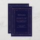 Estas glamorosas tarjetas de información de los bodas presentan un giro moderno en la decoración clásica del arte. Un marco geométrico y ornamentado con un dorado falso rosa adornan un elegante fondo azul marino oscuro para una espectacular boda vintage. Puede utilizar estas tarjetas para obtener información sobre la dirección, recepción o transporte, información sobre hoteles o alojamientos, y cualquier otra información sobre bodas que necesite conocer a sus clientes.