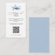 This modern wedding details enclosure card features soft dusty blue florals on a clean white background. The layout includes a clear QR code section for easy access to wedding information. Simple typography and a streamlined design create a fresh and elegant look that matches dusty blue, spring, and garden wedding themes.