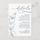 This wedding details enclosure card features a clean white background with navy blue text and artwork. Simple eucalyptus line art adds a fresh botanical accent. The layout is modern, minimal, and easy to read. This card pairs well with navy blue or greenery wedding invitations and keeps all event details organized in an elegant way.