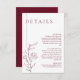 Tarjeta De Recepción Modern Floral Chic Burgundy Wedding Details
