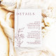 This chic wedding details card features modern floral artwork on a crisp white background. The elegant burgundy typography creates a clear and stylish layout that is easy for guests to read. There is space to share important information such as directions, accommodations, dress code, or reception details. The design pairs well with formal, romantic, fall, and winter wedding themes and completes a coordinated burgundy invitation suite.