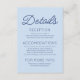 Tarjeta De Recepción Modern Minimalist Blue Wedding Details