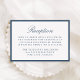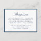 This reception enclosure card features “Reception” in refined navy calligraphy with your reception details shown below in traditional serif type. A deep navy border surrounds the design, giving the card a tailored, sophisticated appearance that feels both classic and enduring. The balanced layout offers a clear and elegant way to present your reception information, making this enclosure well-suited for traditional, modern classic, and formal weddings.