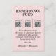 Elegant and romantic, this Honeymoon Fund enclosure cards features soft pink background and a scannable QR code directing guests to your honeymoon fund. Perfect for including in wedding invitations, it's a stylish way to invite contributions to your dream getaway. These wedding honeymoon fund cards are a part of a Pink Garden Rose wedding collection with coordinating items available.