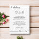 Esta elegante tarjeta de gabinete con detalles en boda blanco y negro es perfecta para un boda moderno. el diseño es sencillo, con una elegante caligrafía en negro sobre un fondo blanco.