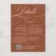 Un eterno tema de postre terracota y elegante carta de detalles de bodas con un refinado guión de caligrafía sobre un fondo clásico, perfecto para una celebración formal y sofisticada de los bodas. Para personalización o productos adicionales con este diseño, por favor no dude en contactarme.