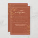 Esta moderna, simplista y sabrosa tarjeta de recepción de bodas de estilo boho cuenta con hermosas hojas de oro y una combinación de escritura y letras simplistas. Puede personalizar este diseño con sus propios detalles de la recepción nupcial.