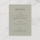 Tarjeta de gabinete de detalles modernos y sencillos que coincide con la invitación a una boda monograma con un texto mínimo y un diseño contemporáneo, con un fondo verde sabio y texto en gris negro cálido. Esta moderna tarjeta de gabinete de invitación para boda forma parte de mi colección de diseños de fondo mixto y Boda de correspondencia, que incluye todos los colores de fondo y fuente coincidentes - simplemente combina y combina tu invitación de boda en monograma con otras papelería boda en temas de color únicos como tonos pastel y tierra.