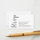 Esta es la tarjeta moderna mínima, RSVP, Black calligraphy Script, para la respuesta de la invitación a la boda, o la tarjeta de inscripción para la celebración del fiesta. Puede cambiar los colores del tipo de letra y agregar los detalles del boda en el tipo de letra / letra correspondiente. Teesha Derrick