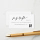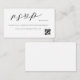 Tarjeta de gabinete RSVP de boda diseñada por un personalizado que presenta un diseño moderno y elegante en blanco y negro con su texto personalizado y código QR.