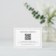 Simple tarjeta de gabinete de sitio web Boda con un diseño moderno y elegante con su código QR personalizado junto con su mensaje rodeado por un borde delgado. Todo el texto es verde sobre un fondo blanco y puede cambiarse a cualquier color que desee haciendo clic en el botón "personalizar". Una moda y una elegante tarjeta de Boda que combina bien con cualquier tipo de suite para invitados a la boda.