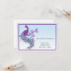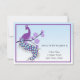 Elegante tarjeta de recepción con pavo real morado y azul posado en rama con flores moradas claras sobre fondo azul con borde morado. Personalizable para cualquier ocasión. Piezas a juego disponibles. Algunos gráficos ©Riefka Designs