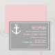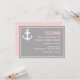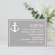 Tarjeta de Recepción Náutica Rosa y Gris Esta tarjeta de recepción náutica con un ancla y una paleta de colores rosa y gris es parte de un conjunto de boda. Están disponibles artículos coincidentes y otros colores.