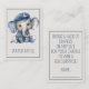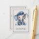 Esta tierna tarjeta de bolsitas de agua para bebés con pañales de rifa incluye un adorable elefante bebé vestido con una camisa a rayas azul y blanco y una gorra de ancla a juego. Personalice el frente y el reverso con su elección de texto especial.