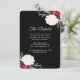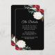 Esta hermosa tarjeta de detalles boda presenta flores y vegetación rojas y blancas festivas con elementos dorados sobre un elegante fondo negro. Consulte esta colección de bodas de vacaciones para coordinar elementos.