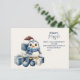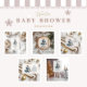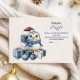 Celebre una alegre ducha de bebé de invierno con este encantador diseño con un pingüino pintado a mano en un sombrero de Santa y bufanda, rodeado de cajas de regalo apiladas y adornos azules festivos. El suave estilo acuático y los tonos fríos crean un ambiente alegre y acogedor, perfecto para dar la bienvenida a un niño durante las vacaciones.