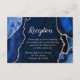 Complete your wedding stationery suite with this elegant reception enclosure card featuring a navy blue agate marble design accented with luxurious silver details. The bold geode-inspired background creates a dramatic and sophisticated look, perfect for fall and winter weddings, formal celebrations, or glamorous evening events. Designed to provide guests with reception information such as cocktails, dinner, and dancing, this enclosure card pairs beautifully with matching invitations. The clean, modern typography keeps your details easy to read while complementing the organic agate texture. Easily personalize all text to suit your wedding details and create a seamless and stylish experience for your guests.