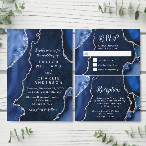 Navy Blue and Silver Agate Marble WeddingDiseñado por Kirsty W