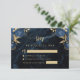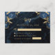 Tarjeta De Recepción Navy Blue Gold Floral Agate Script Wedding RSVP