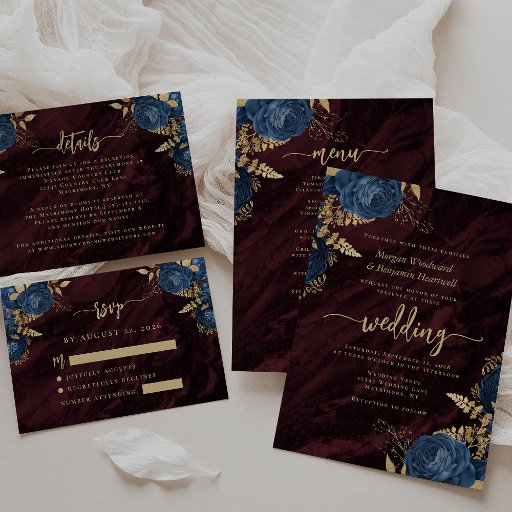 Navy Blue Gold Floral Burgundy Wedding SuiteDiseñado por Akhates Designs