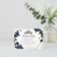 Tarjeta De Recepción Navy Blue Golden Tiara Roses Butterfly Quinceañera