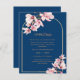 Tarjeta De Recepción Navy Blue Magnolia Floral Wedding Details