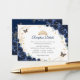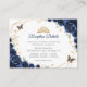 Navy gold and white floral Quinceanera reception details enclosure cards. Features, script font, gold butterflies, watercolor roses and tiara. Perfect for an elegant princess style glam celebration. Personalize with your own details.