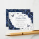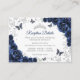 Navy silver Quinceanera reception details enclosure cards. Features, script font, silver butterflies, watercolor roses and tiara. Perfect for an elegant princess style glam celebration. Personalize with your own details.