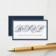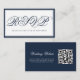 Clásica y elegante escritura de caligrafía azul marino y blanca con minimalista tarjeta de respuesta de código QR boda personalizada estilo sencillo. Este producto se puede personalizar fácilmente. Si necesita ayuda para la personalización del producto o necesita productos a juego, póngase en contacto conmigo a través de Zazzle.